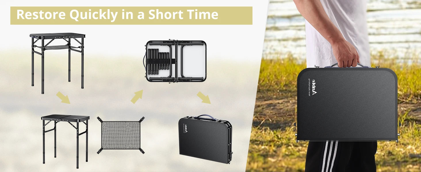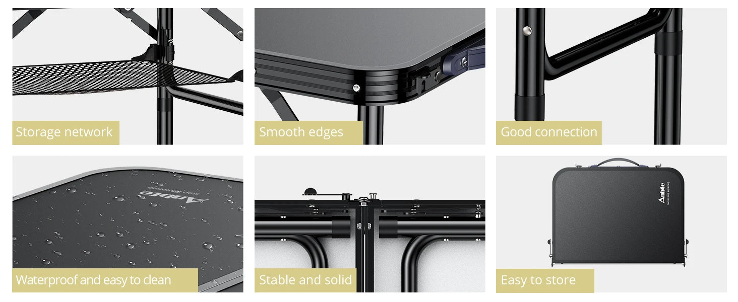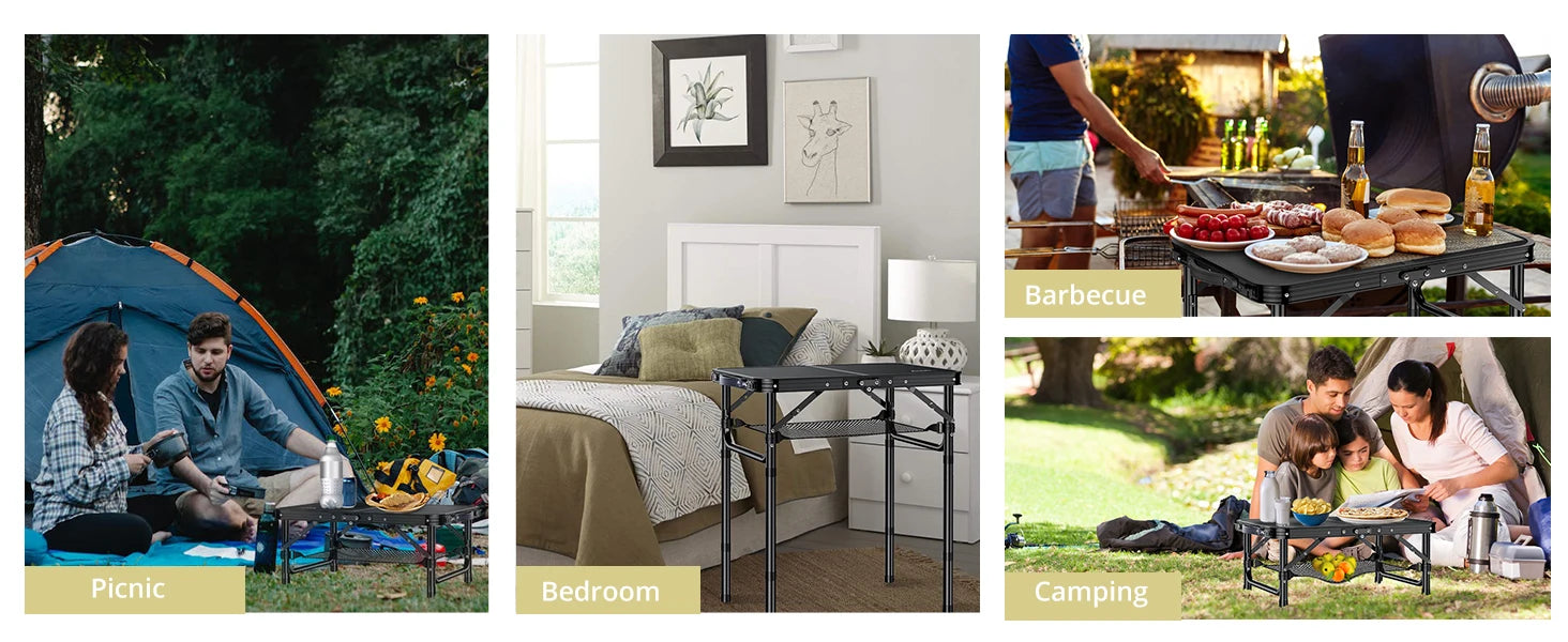 Camping Table, Folding, Black Aluminum 23.2"x16", Adjustable H 26.4",
