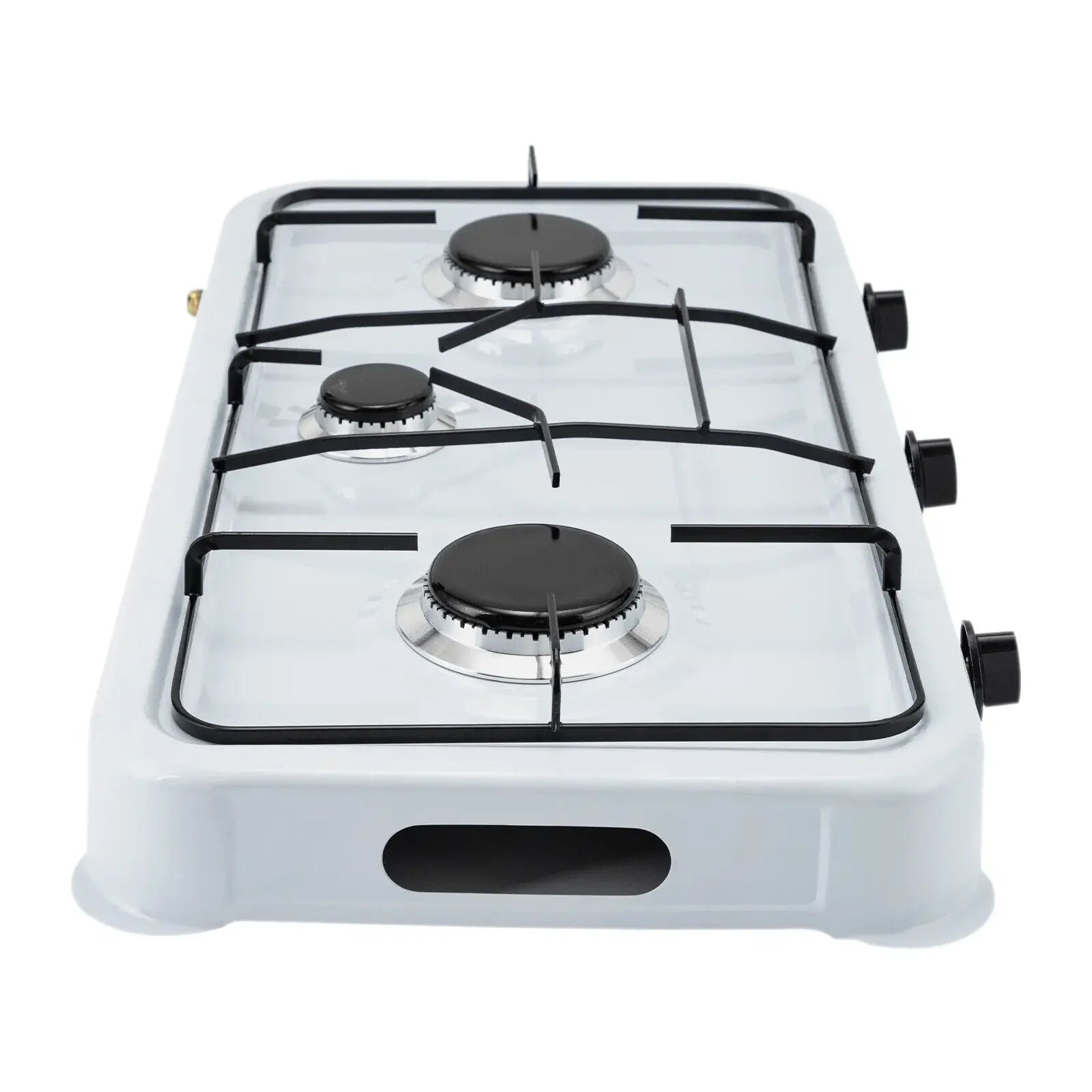 White Built-in 3-Burner Gas Cooktop Rectangular Cast Aluminum with Hose